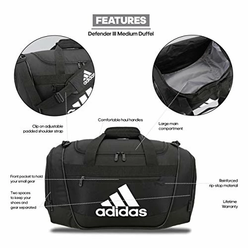 Adidas Defender III Medium Duffel Bag, Black/White