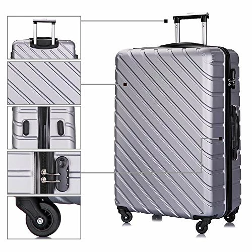 Details: The 4 piece luggage sets include one 18 inch suitcase, one 20 inch suitcase, one 24inch suitcase and one 28 inch suitcase, which allows you to assign all yourclothes in perfect order for your own needs and preferences. The firm codedlock guarantees the security of your luggage. No matter the multi-directionalwheels, or the ergonomically designed telescoping handles will add muchconvenience to your trip. The spacious main compartment and zippered pockets keepyour travel essentials, your small valuables well organized. It is perfect forany trip you may have.Specifications: