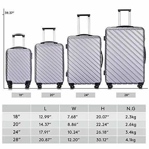 - ★4 piece luggage set:18inch, 20 inch,24 inch,28 inch upright, You will only receive one package containing all 4 pieces suitcases for your convenience and save valuable space when storing .100% ABS, Lightweight yet extremely durable abs material.