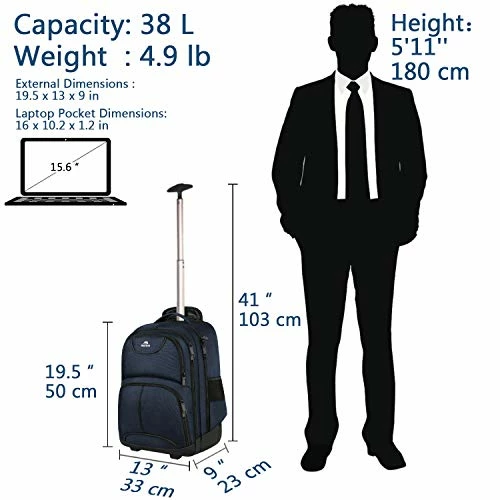 - Dimensions: EXTERIOR DIMENSIONS – 13 X 9.05 X 19.68 inches, Item WEIGHT: 4.8 pound; 22 inch Aluminum Hideaway Telescoping Handle can freely adjust the length at your needs.The business backpack for adults, men women ,teens, college student, high school student.As a good Thanksgiving gifts for son, daughter and husband