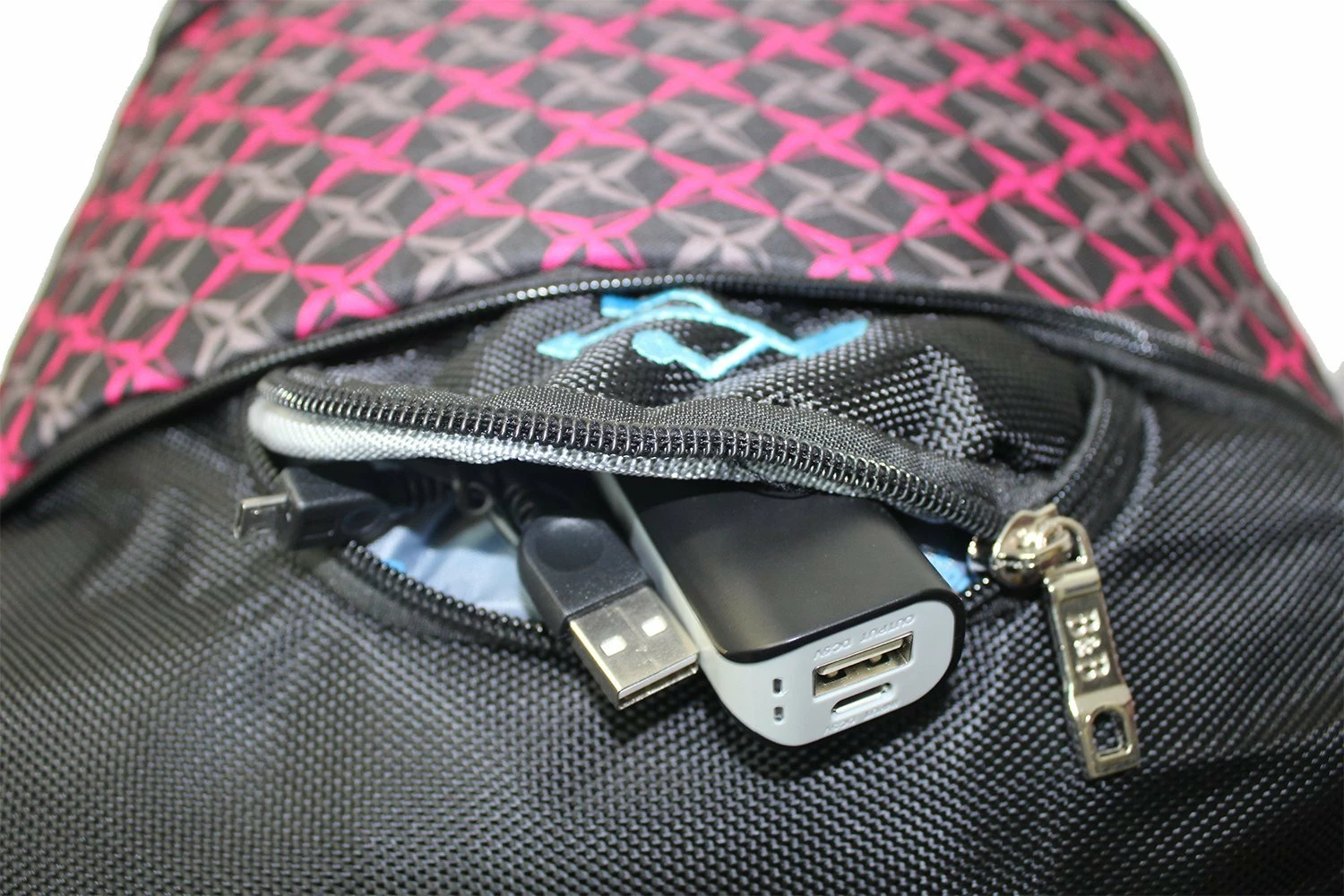 - One front pocket ideal for passport, keys, Travel ticket etc. ___ One top pocket for charge cable .9″7″ I pad Pocket