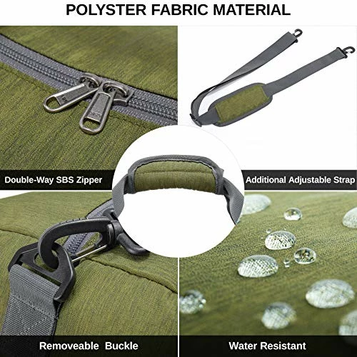 - ????Large Capacity: Product Dimensions of unfolded size: 29.5″*13.8″*16.7″.Made from water repellent& wear resistant&tear resistant polyester fabric and premium zippers, the large duffel bag super durable and lightweight. Folded size only 11″*3.9″*12.2″ which is very easy to store it.