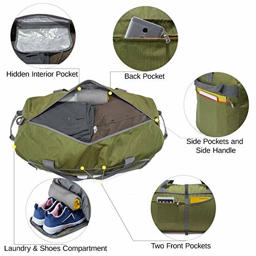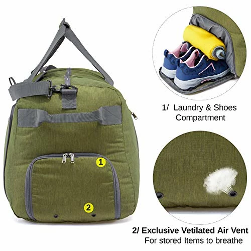 - ????Reasonable Design: This luggage duffle bag is featured with internal pocket and shoe compartment, multiple pockets, 1 upward handle and 2 side handles, adjustable& removable long shoulder strap and sleeve on the back to slip it over luggage handles to offer you better usage experience.