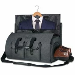 - LARGE CAPACITY DUFFEL BAG – After assembled, this garment duffel bag work perfect as a 45L duffel bag. Thanks to multiple interior zipper pockets, it maximizes storage capacity, holding everything from suits, dresses to shoes and ties For even more space, we added an exterior pocket that provides easy access to electronics and travel or business documents, so you can just focus on having a fantastic trip!