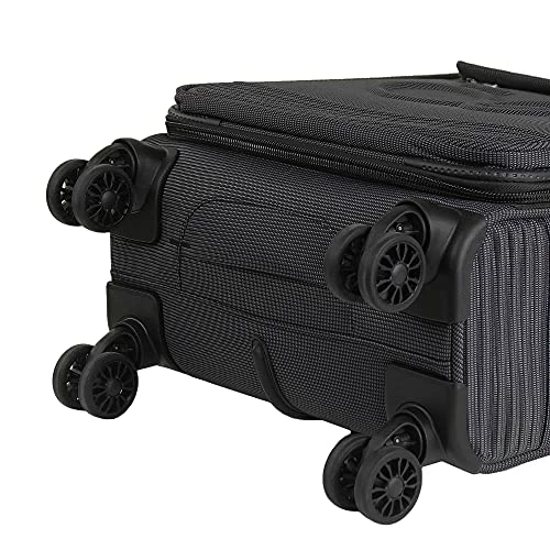 Details: Carry-On 20 inch luggage made from hard-wearing polyester Fabric. Double 360º-Spinner Silent Wheels (4 double wheels). Debossed front detail. Front pocket.