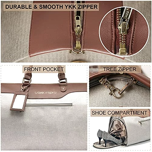 - TWO BAG IN ONE travel inspira BAG: This Garment Bag combine the feature of Garment Bag and Duffel Bag, is not only a travel weekender bag but also a great hanging garment Bag. Use YKK Zipper, a professional zipper brand, zipper cover for extra protection, no rust.