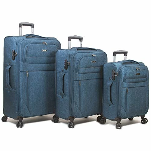 Details: From a quick business trip to a dream vacation, you are ready to roll with the smooth mobility of the Dejuno Aurora 3-Piece Luggage Set. Built from durable and lightweight premium denim fabric and set on eight easy-moving spinner wheels. The body design includes a 2-inch expandable feature that will provide additional space when you need just a little more room, built-in 3-digit combination lock, push-button retractable handle system, and top and side grip handles.