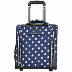 Details: Polka dot printed 600d polyester 2-wheel underseater. 2-Wheel spinners allow for smooth-rolling high performance in-line skate wheels. Lightweight construction helps you meet airline weight restrictions, to avoid unnecessary airport fees. Stylish, polka dot printed 600d polyester with fully lined, Tear-Resistant, color accented interior and color pop zips. Front exterior features a front zip down pocket with three additional zipper pockets. Roomy main compartment includes a garment panel and two zippered wet bags to organize your belongings. One open elastic top side pocket to access frequently needed items. Reinforced, padded top handle allows for easy lifting. Retractable trolley handle retracts to be 41″ tall with a locking push button mechanism. Trolley strap made to fit over most retractable trolley handles for convenient hands-free carrying. Manufacturer 10 year limited warranty. Overall Dimensions: 16″ h x 13.5″ L x 8″ D (includes wheels). weight: 4.7 lbs.
