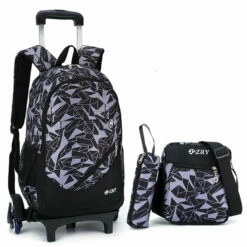 Meetbelify 3pcs Kids Rolling Backpacks Luggage Six Wheels Trolley School Bags (Black With 6 Wheels)