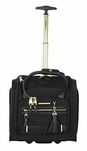 Steve Madden Designer 15 Inch Carry On Suitcase- Small Weekender Overnight Business Travel Luggage- Lightweight 2- Rolling Spinner Wheels Under Seat Bag For Women (Peek-A-Boo Black)