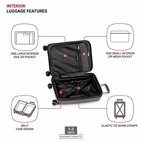 - ORGANIZATION AND EXPANDABILITY: Split-case design expands for additional packing space and a variety of internal zippered packing pockets keep you organized