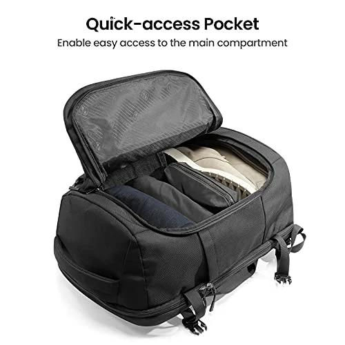 - Convenient Storage: You can reach the main compartment from the quick access front pocket for easy reach of your travel essentials on the go, and the main compartment can also be unzipped like a suitcase for easy packing and unpacking; The tech compartment can accommodate up to 17″ laptop and 12.9 inch iPad with accessories; Front pocket, top pocket and side pockets for easy access to glasses, documents and travel liquids, etc.