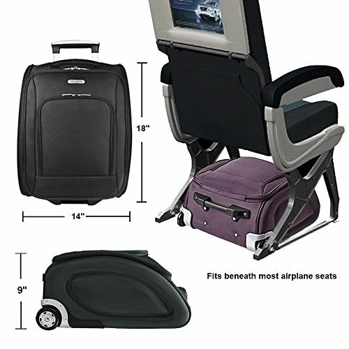 - Fits beneath most airplane seat. Retractable double pole handle for pulling easily. Coms with smooth rolling wheels for easy and quick movement.