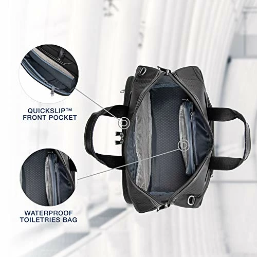 - Quick access front and rear slip pockets are ideal for storing essentials. Removable quart-sized wet pocket is TSA compliant and perfect for storing toiletries