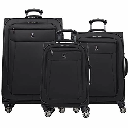- TRAVELPRO 3 PIECE LUGGAGE SET: These Softside Spinners are the perfect lightweight suitcases. Each suitcase features a full length, gusseted front pocket for easy access to your wallet, airline ticket, or passport. Travelpro luggage is designed with durable 2-tone water-repellent fabric and corner guards that can handle the wear and tear of travel and checked baggage.