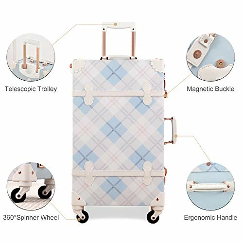 Details: UNIWALKER Vintage Spinner Luggage Set with Handbag for Women