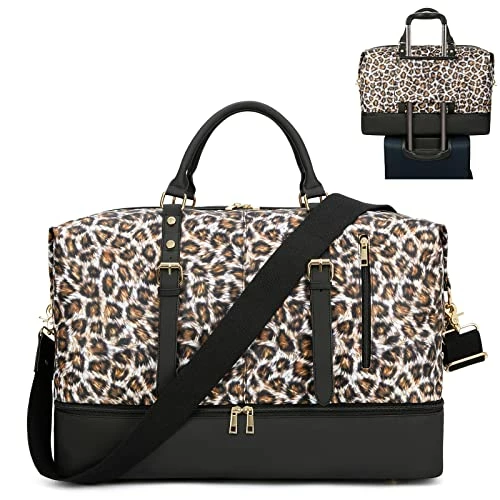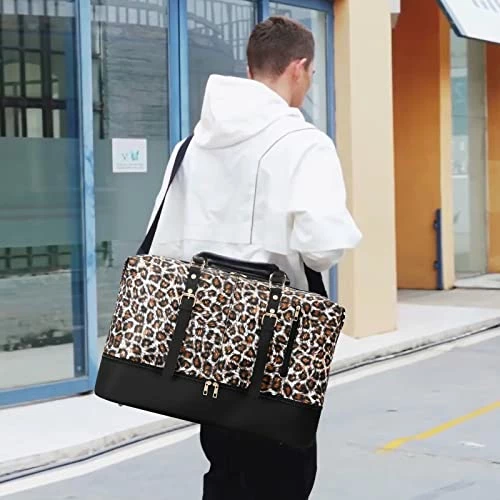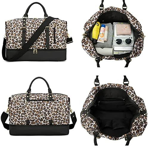 - Brand new Leopard travel duffel bag upgraded on material and leather, as well as the new function: a separate shoe compartment on the bottom which is useful for putting your dirty shoes seperate from your clean clothes while travelling